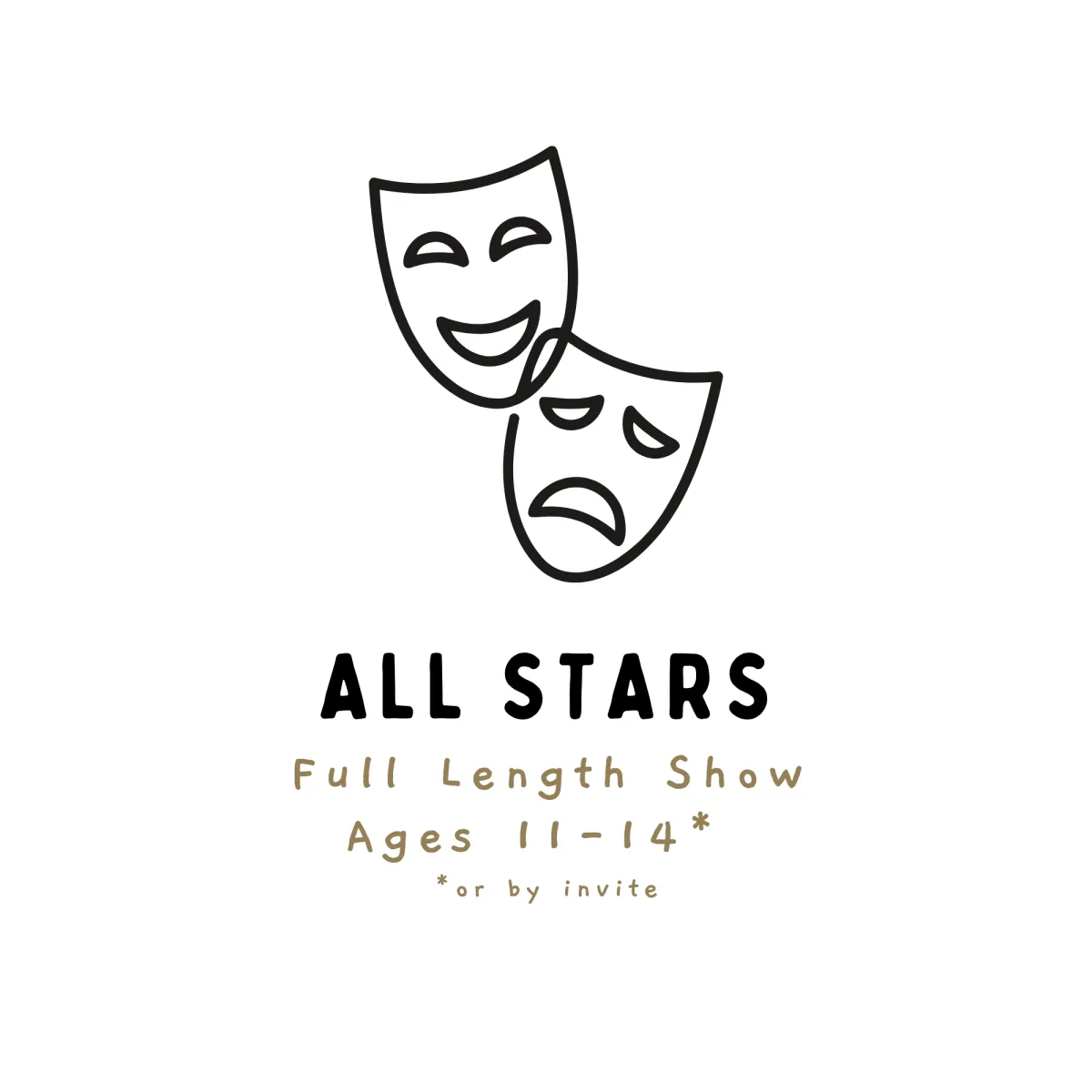 Broadway KIDS is for younger performers (ages 5–7), JR is for ages 8–11, and All-Stars is our advanced group for experienced performers ready for bigger roles and more intensive work